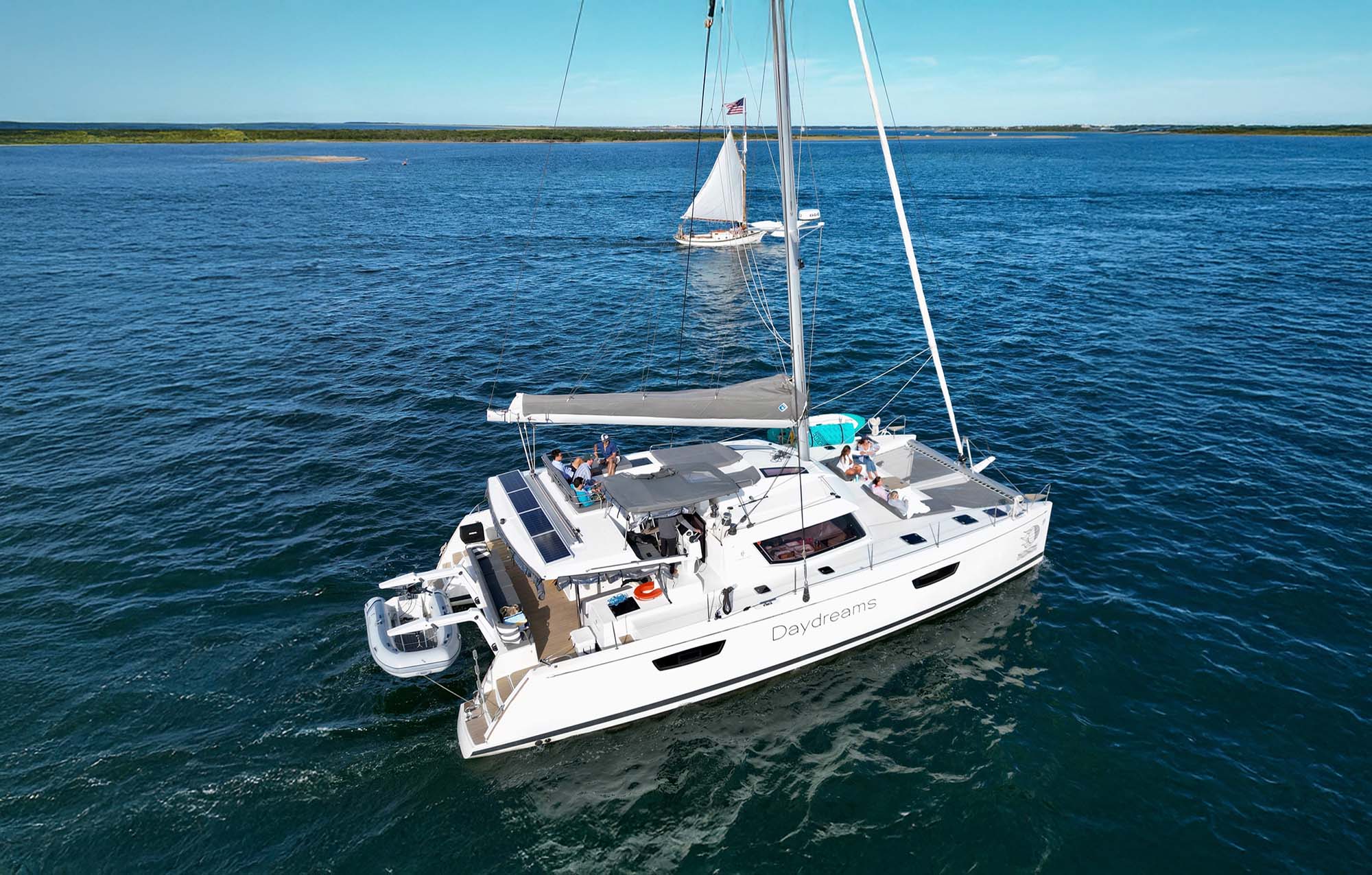 Set sail around Nantucket in style and have a memorable experience with friends and family on Daydreams, a beautiful 50′ luxury sailing catamaran. Cruise up Harbor and go for a swim or standup paddle. Hoist the mainsail and set sail for Great Point, all while basking in luxurious comfort. This yacht turns heads wherever she goes.